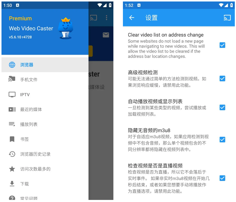 Web Video Caster ® 允许您观看喜爱网站上的视频,包括电影、电视节目、新闻直播、体育和 IPTV 。 它还允许您投射存储在手机上的本地视频 还支持照片和音频文件。 在网页上检测到字幕,您也可以使用自己的字幕,或者您可以使用OpenSubtitles.org的集成搜索。