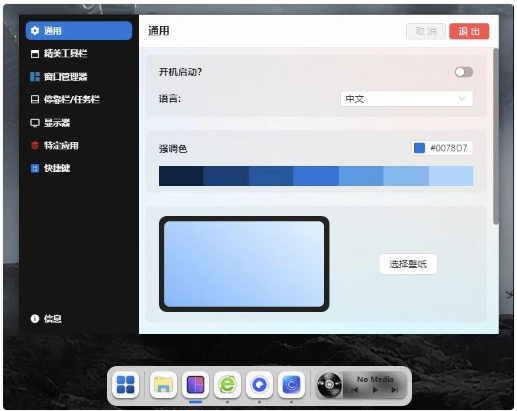 主题配置:允许根据个人喜好调整桌面的每个元素,包括菜单、窗口和小部件。
